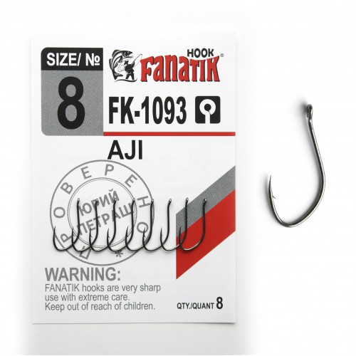 Fanatik Aji FK-1093 – крючок профессионального класса, предназначенный для деликатной ловли осторожной рыбы в условиях, когда она не слишком активна, чем-то насторожена или просто очень малочисленна. Эта модель крючков особо бережно сохраняет наживку в живом, неповрежденном состоянии: на их тонком цевье мотыль или опарыш очень долго остаются привлекательными для рыбы.