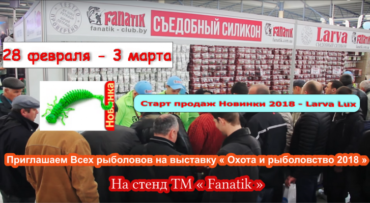 На нашем стенде Вы сможете познакомится с новинкой этого сезона - Larva Lux 2! Приобрести по выгодным ценам силиконовые приманки, крючки, фурнитуру, плетёные шнуры от ТМ "Fanatik"! Получить консультацию по применению данной продукции, узнать отзывы от рыболовов!